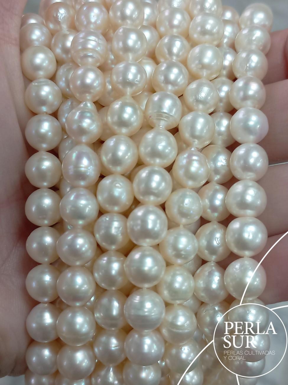 Hilo perla cultivada AKOYA 8-8’5mm barroca tono blanco crema, con mucho cultivo y brillo.