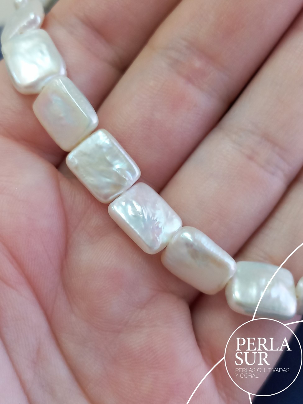 Hilo perla cultivada agua dulce. Perla coin rectangular. Medidas de la perla 11x9mm.