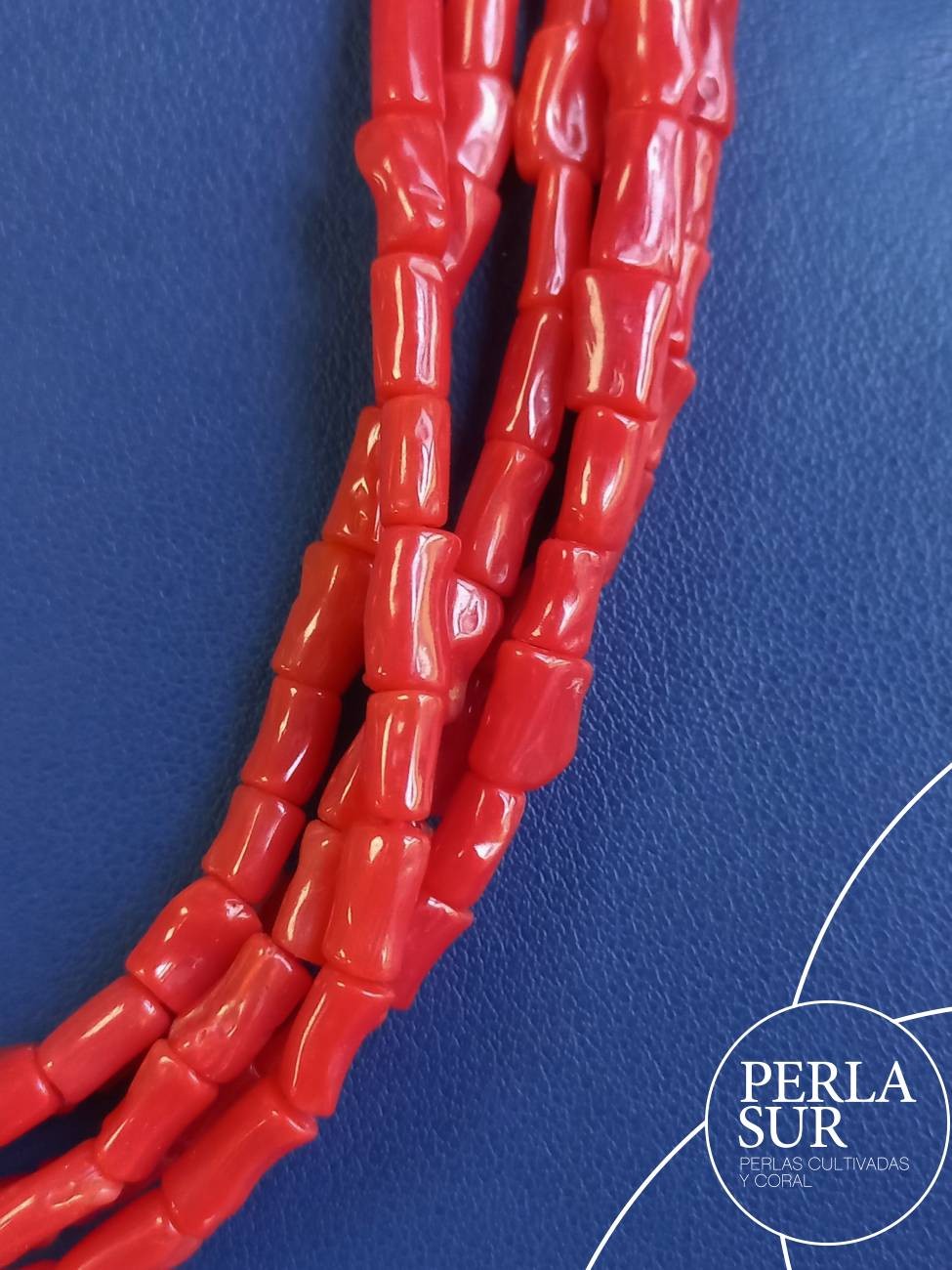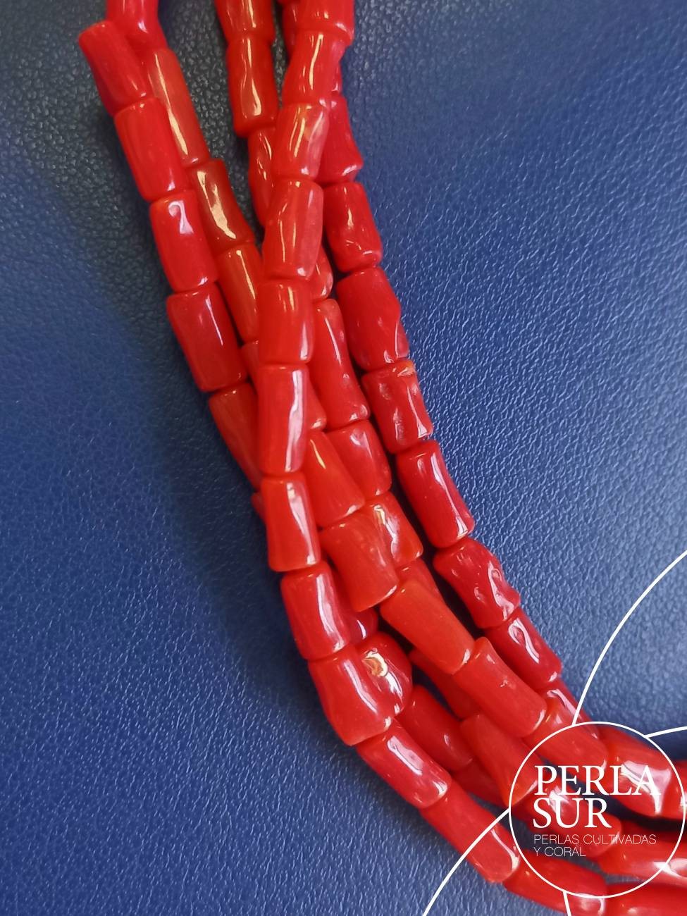 Hilo de pequeños tronquitos de 4x7mm de coral mediterráneo. Largo total 46cm.