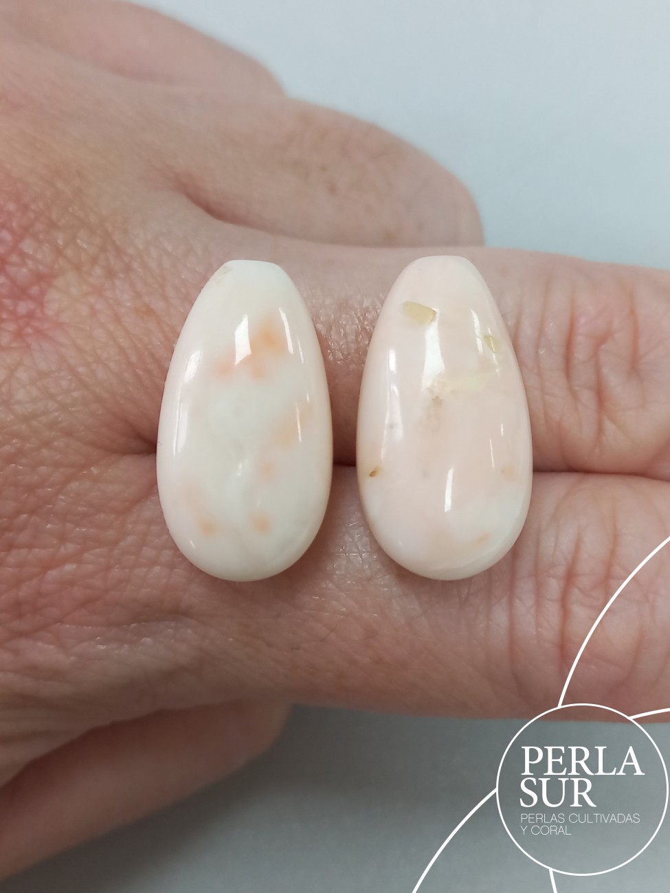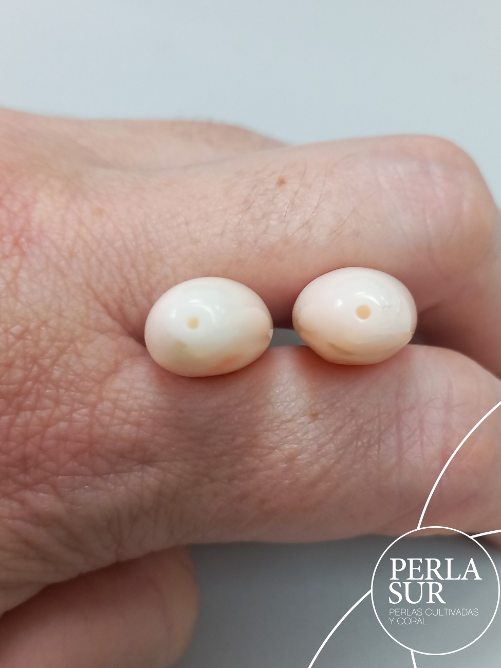 Pareja perillas coral rosa, tono claro. Medio taladro. Precio del par, indivisible.