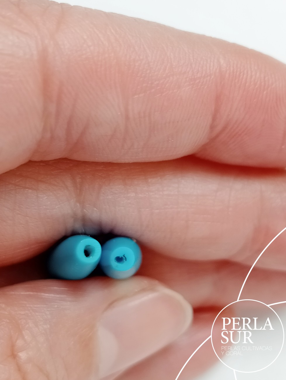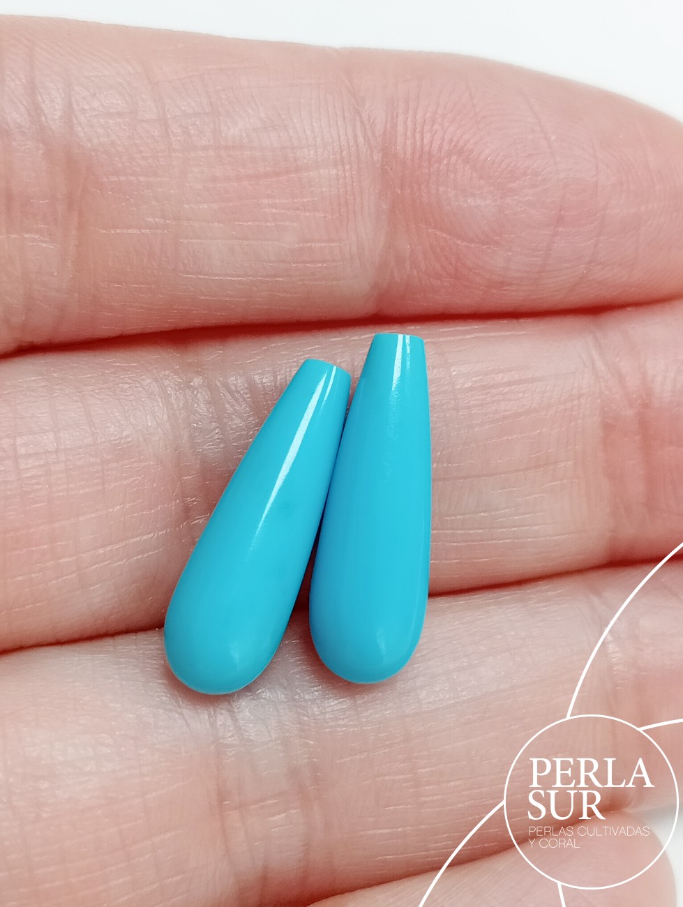 Pareja perillas 1/2t 6x18mm turquesa natural. Tono azul oscuro.
