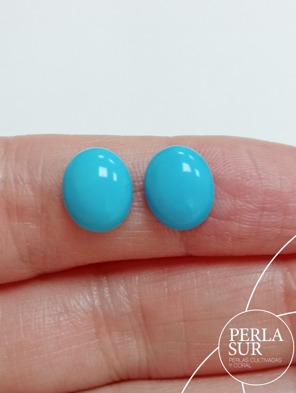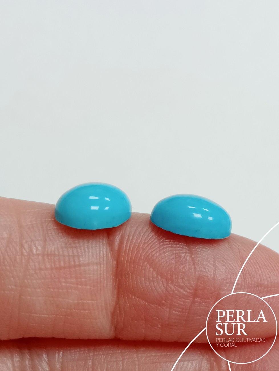 Pareja cabujones ovales 8x10mm turquesa natural. Tono azul oscuro.