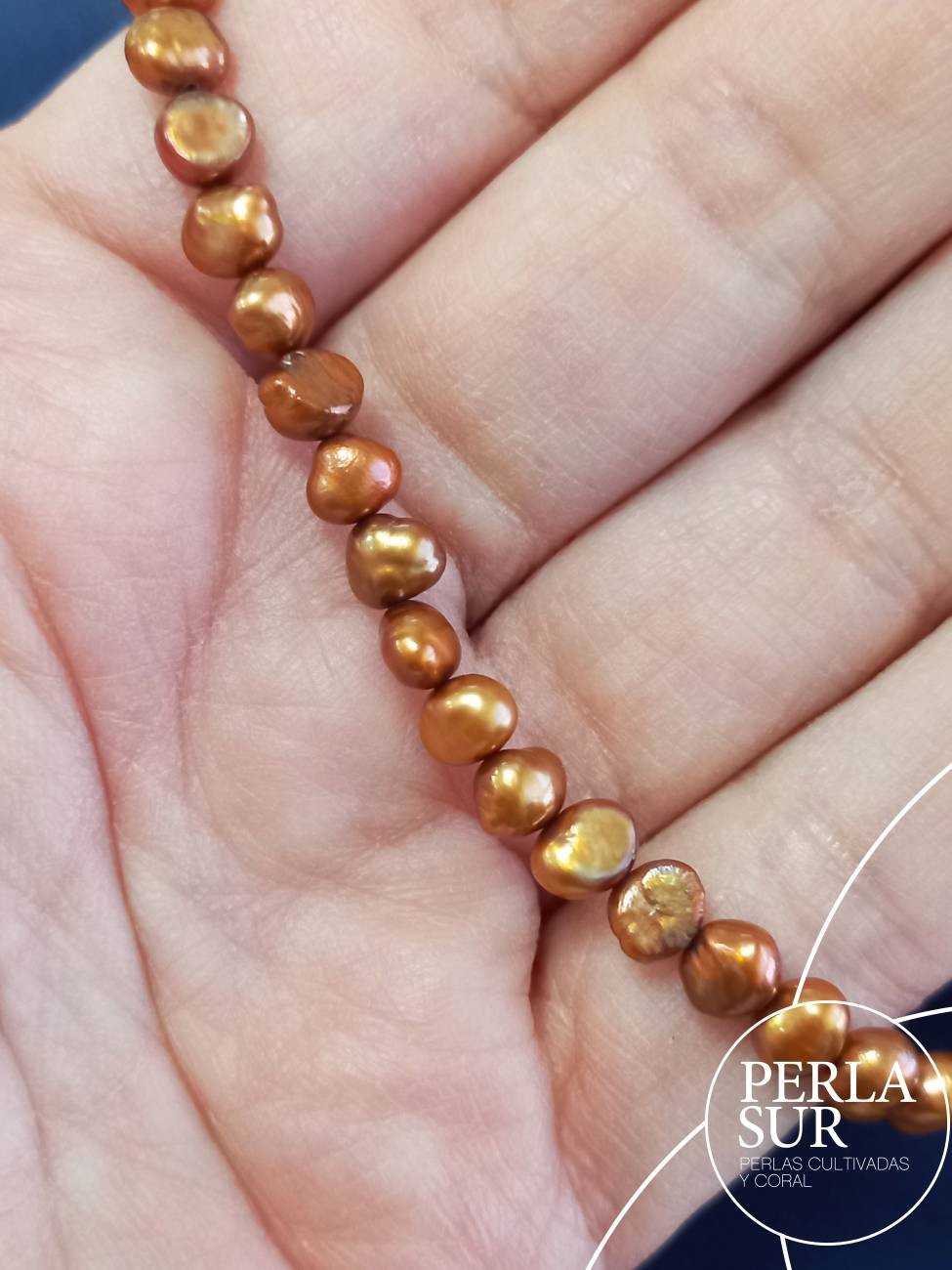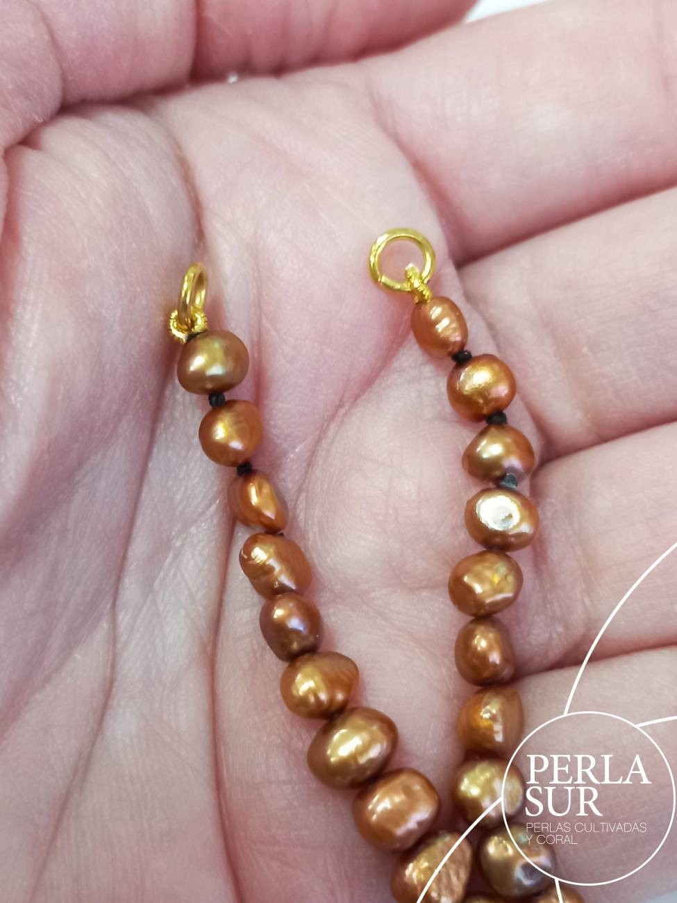 Perlas de color tratado, tonos dorado caramelo.