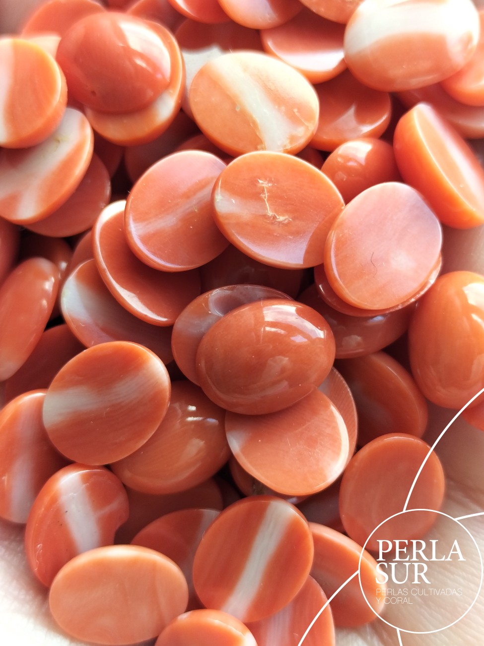 Cabuchón de coral japonés Momo, de la especie Corallium Elatius. En talla oval.