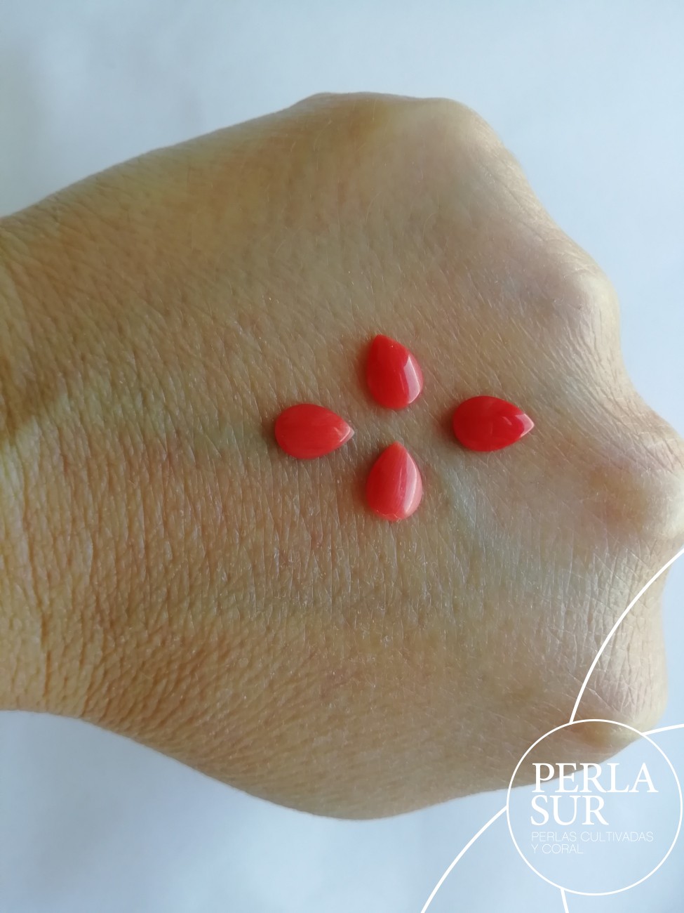 Cabuchón de coral japonés Momo, de la especie Corallium Elatius. En talla lágrima.