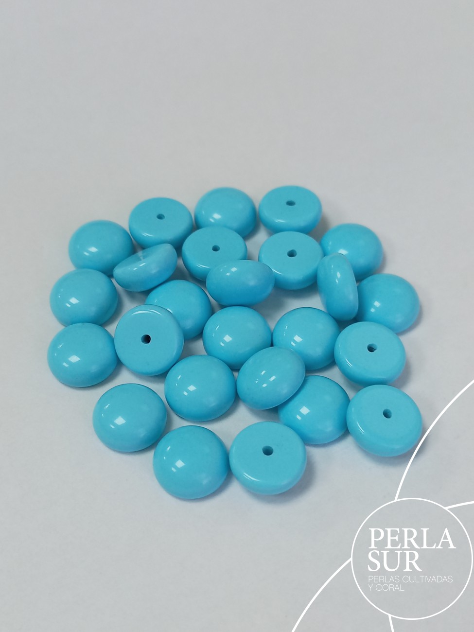 Botón 10mm medio taladro, turquesa reconstituída.