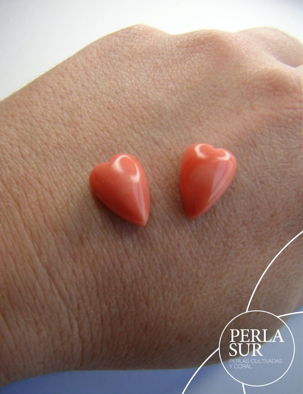 Pareja 9x13mm Cab. Corazón Coral Japonés