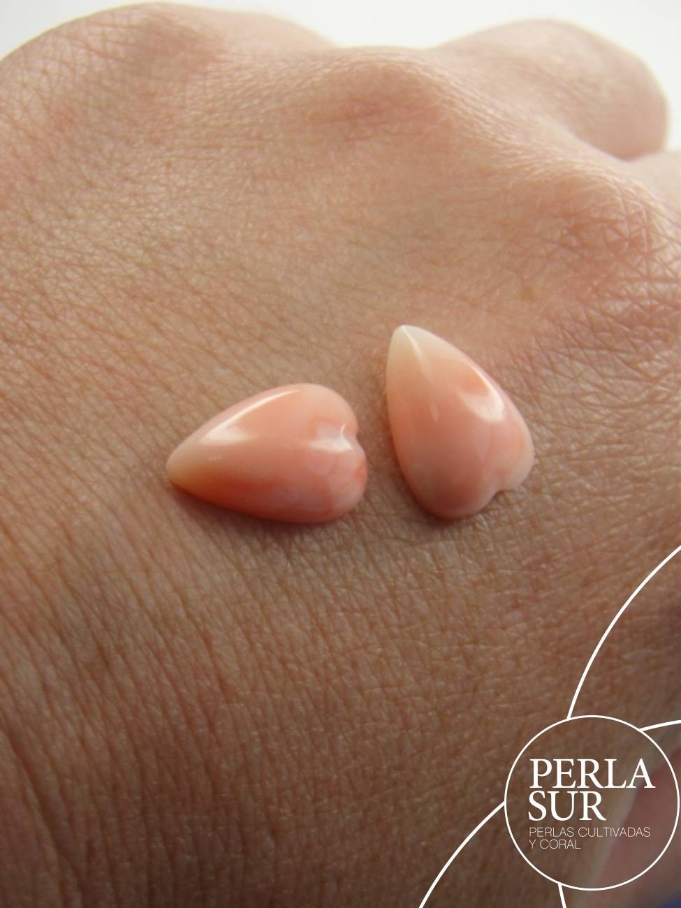 Pareja de Cabuchones de coral rosa (corallium elatius) en talla pétalo o corazón.