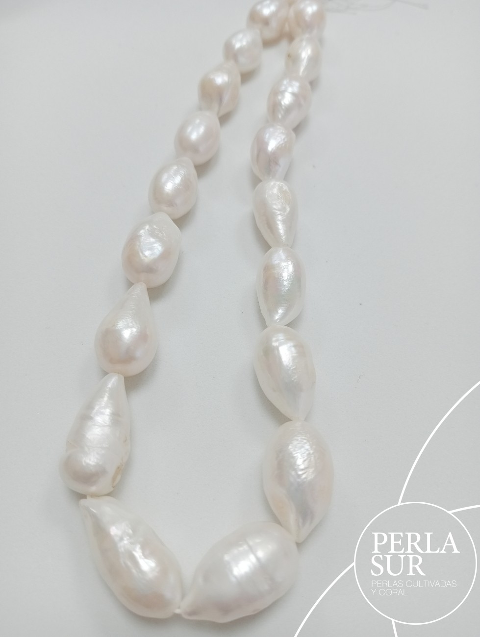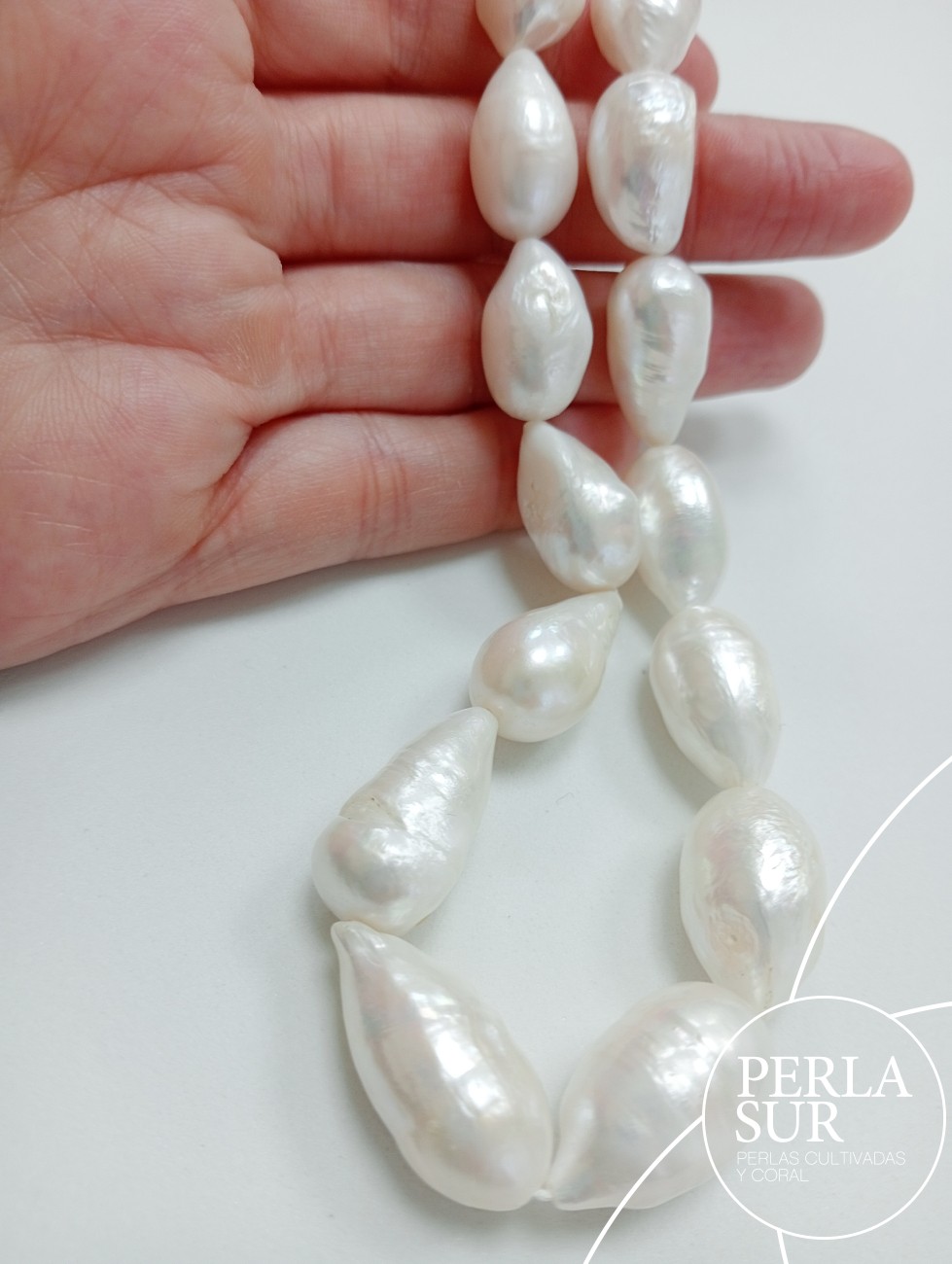 Ancho de las perlas 13mm aprox. Diferentes tamaños de perlas. Total 20 perlas en el hilo.