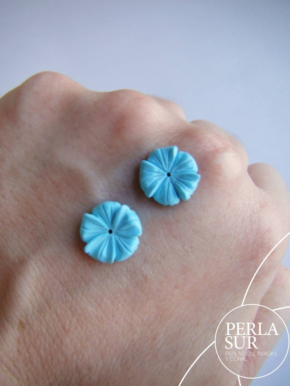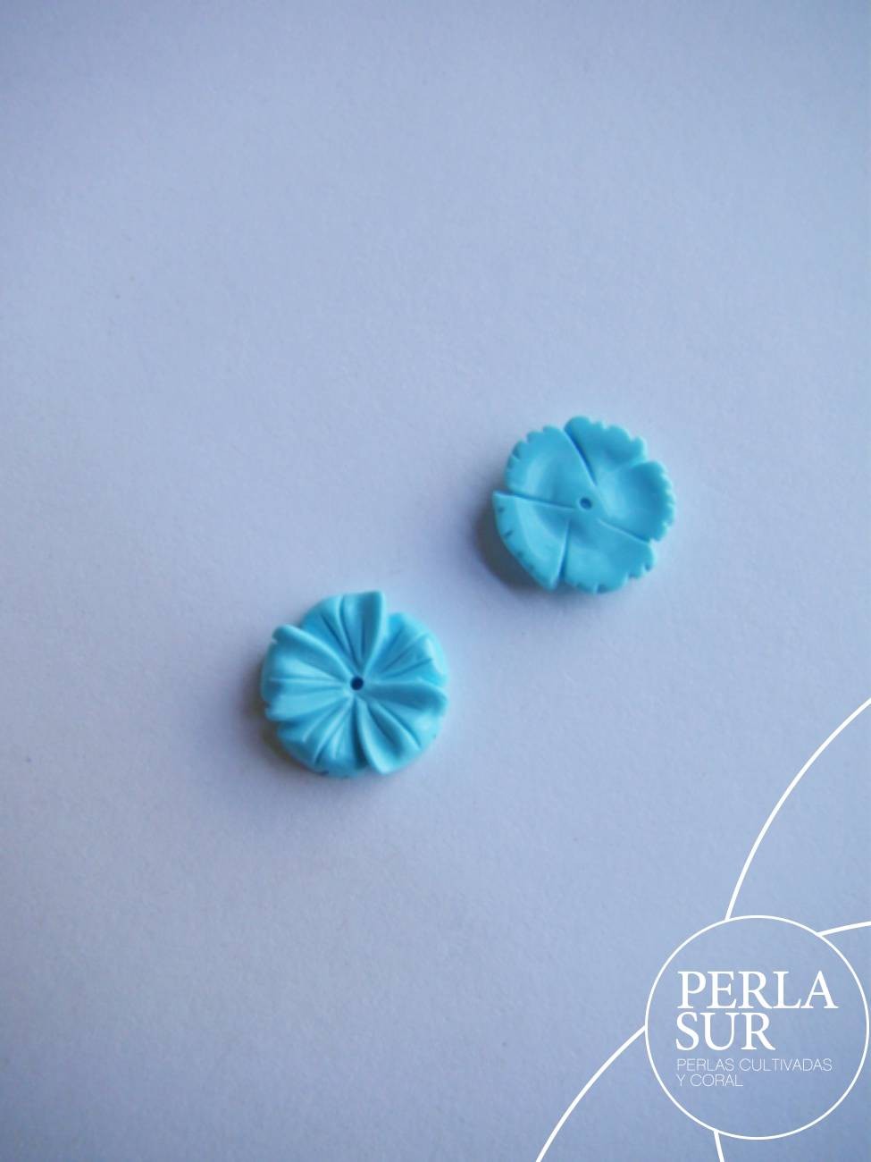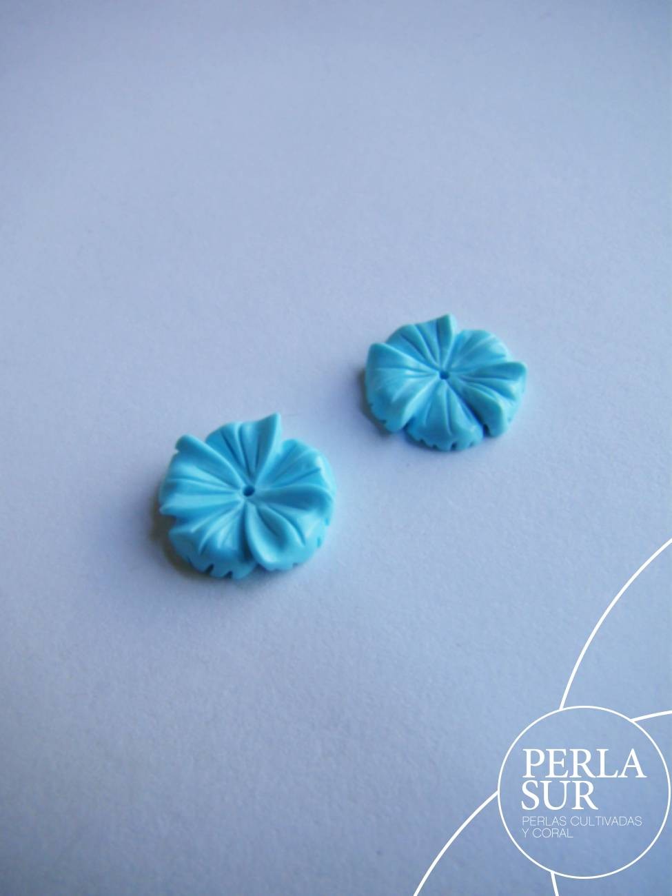 Pareja Flor 5 pétalos 11mm turquesa reconstituída