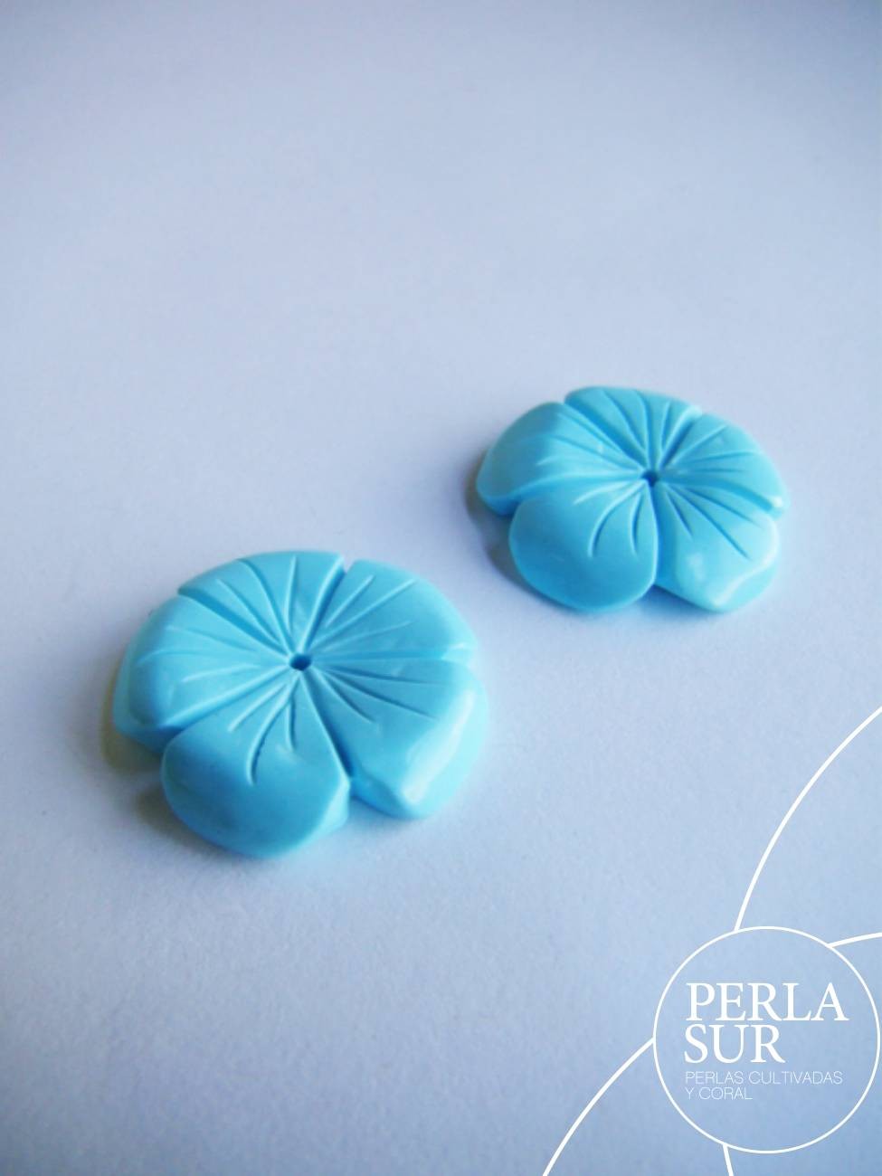 Pareja flor de 5 pétalos 16mm de turquesa reconstituida de alta calidad. No se deteriora el color. Precio por pareja.