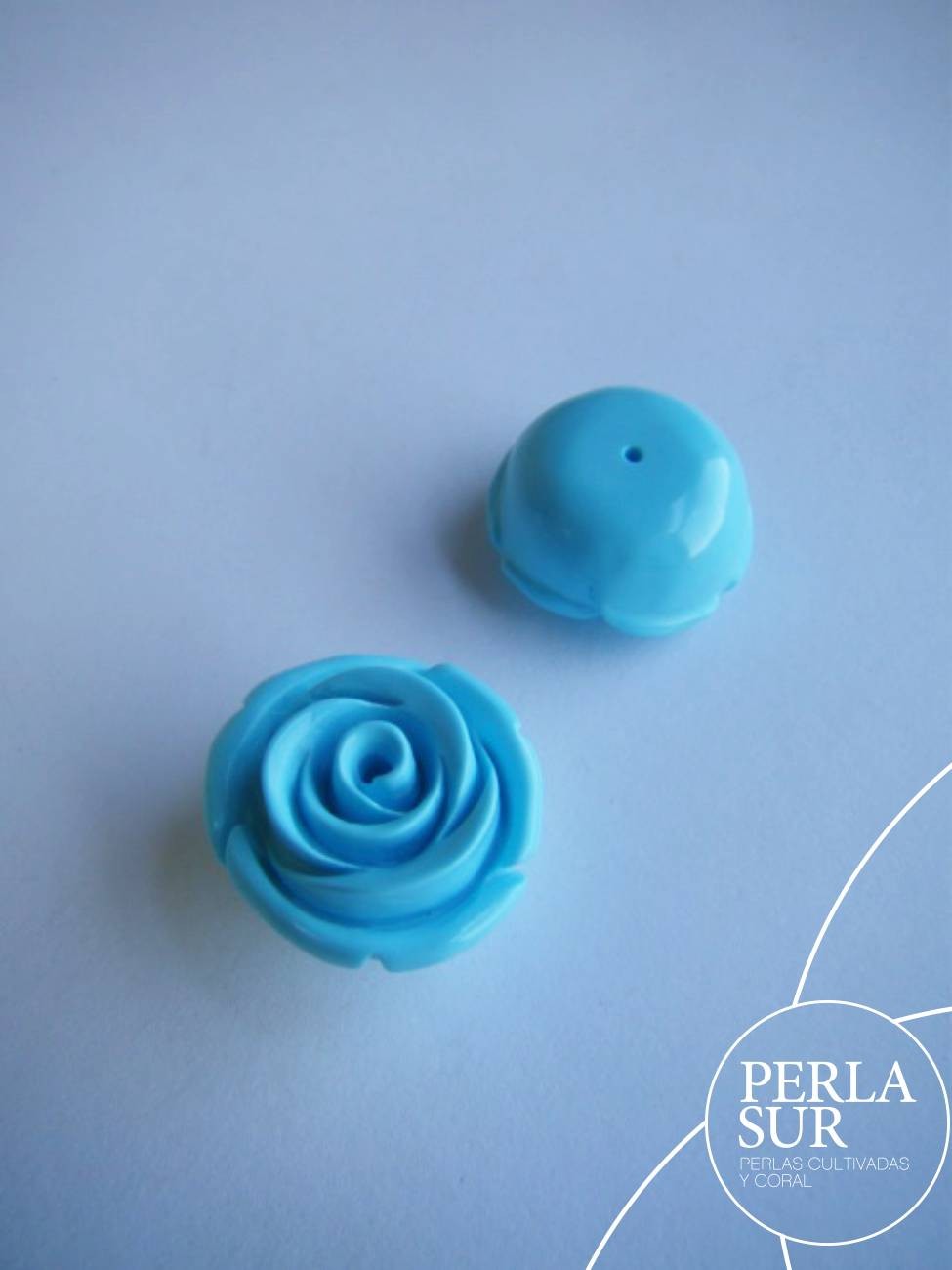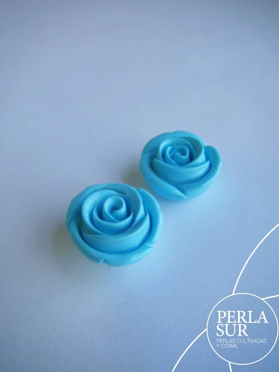 Pareja de Rosas de 19mm hechas de turquesa reconstituida de alta calidad. El color no se deteriora. Tienen medio taladro en la base. Precio por pareja.