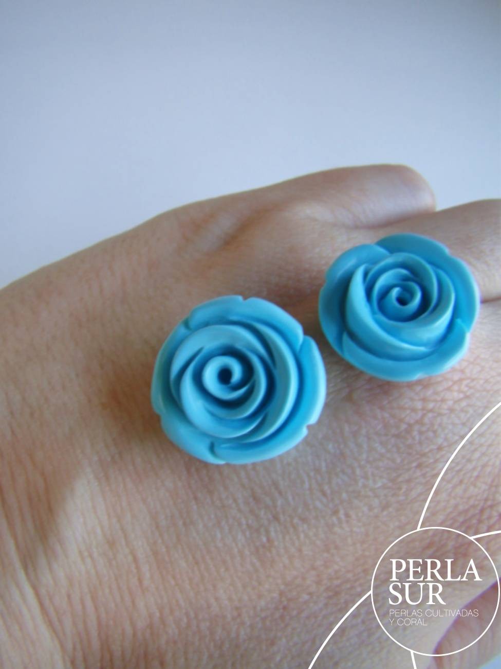 Pareja de Rosas de 19mm hechas de turquesa reconstituida de alta calidad.