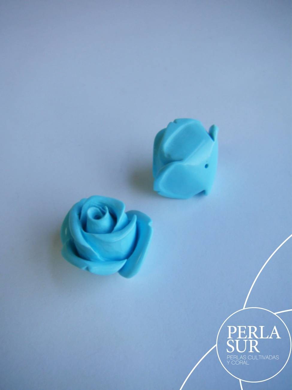 Pareja de Rosas de 20mm hechas de turquesa reconstituida de alta calidad. El color no se deteriora. Tienen medio taladro en la base. Precio por pareja.