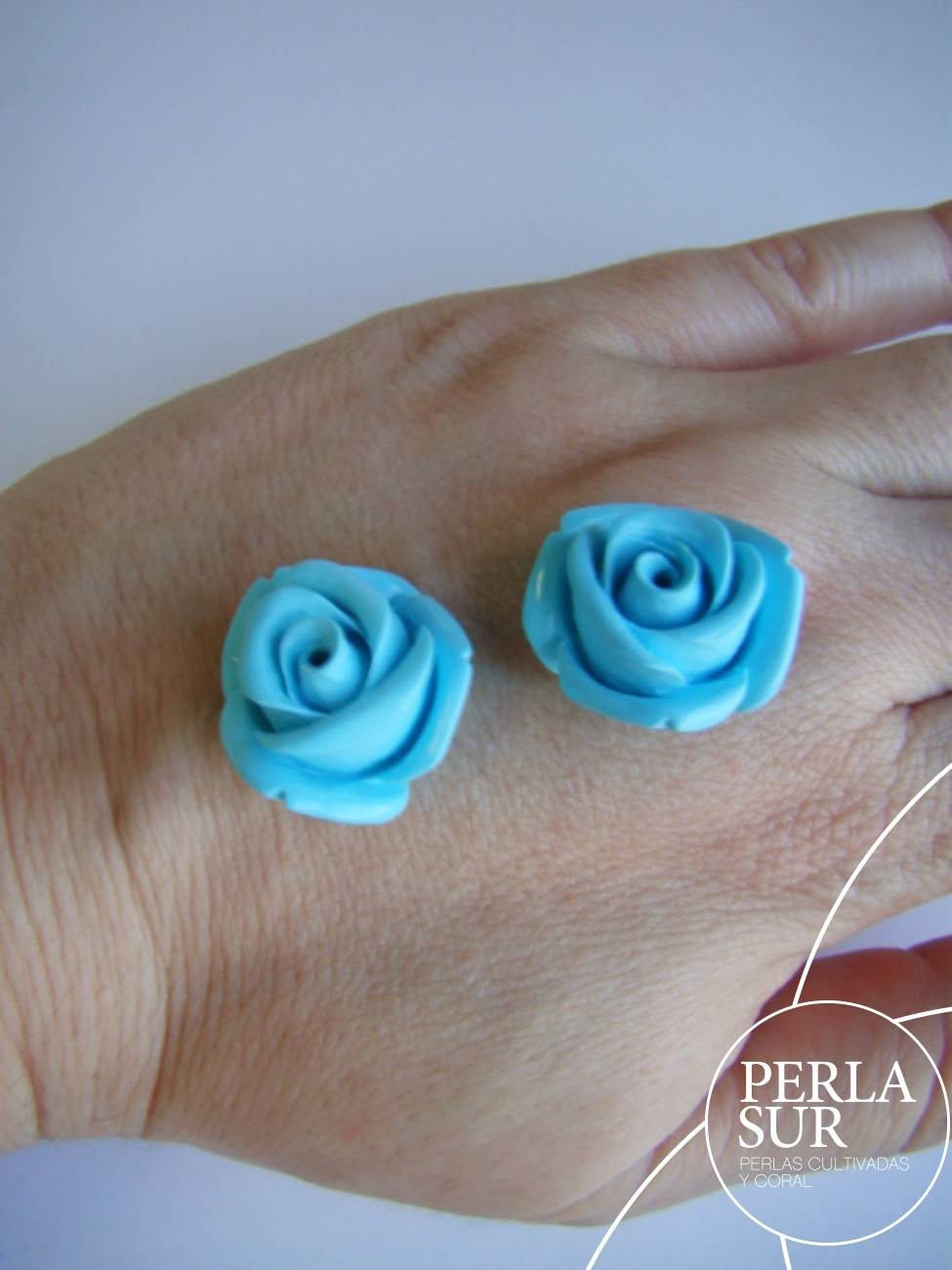 Pareja de Rosas de 20mm hechas de turquesa reconstituida de alta calidad. El color no se deteriora.