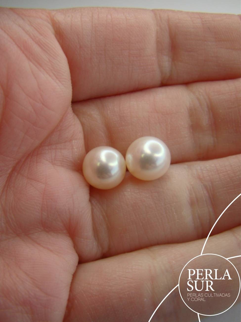 Parejas de perla esférica con medio taladro. Tono blanco-crema. Mucho brillo.