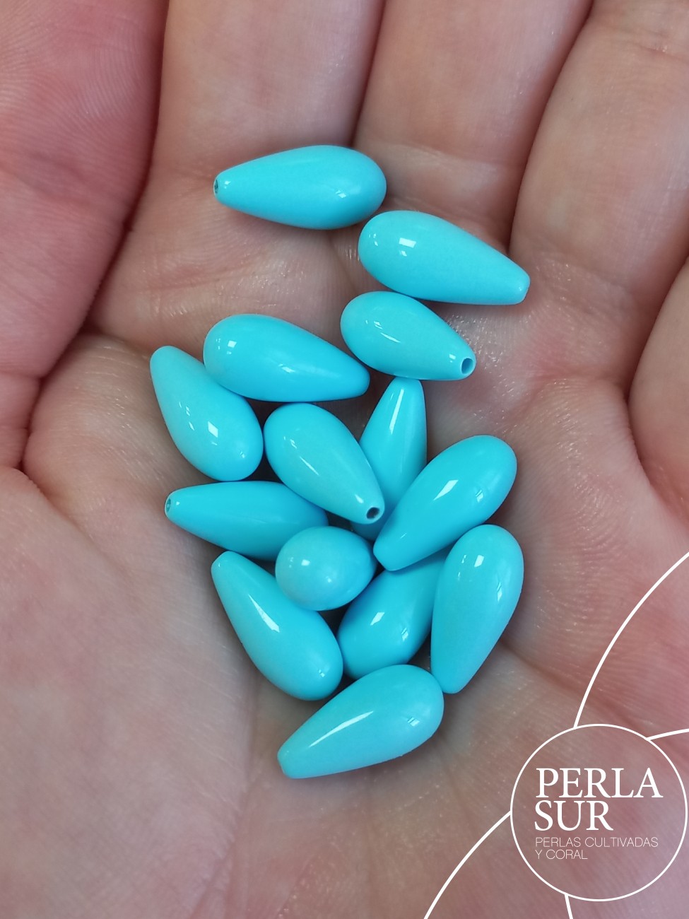 Perilla 15x7mm turquesa reconstituida, medio taladro.