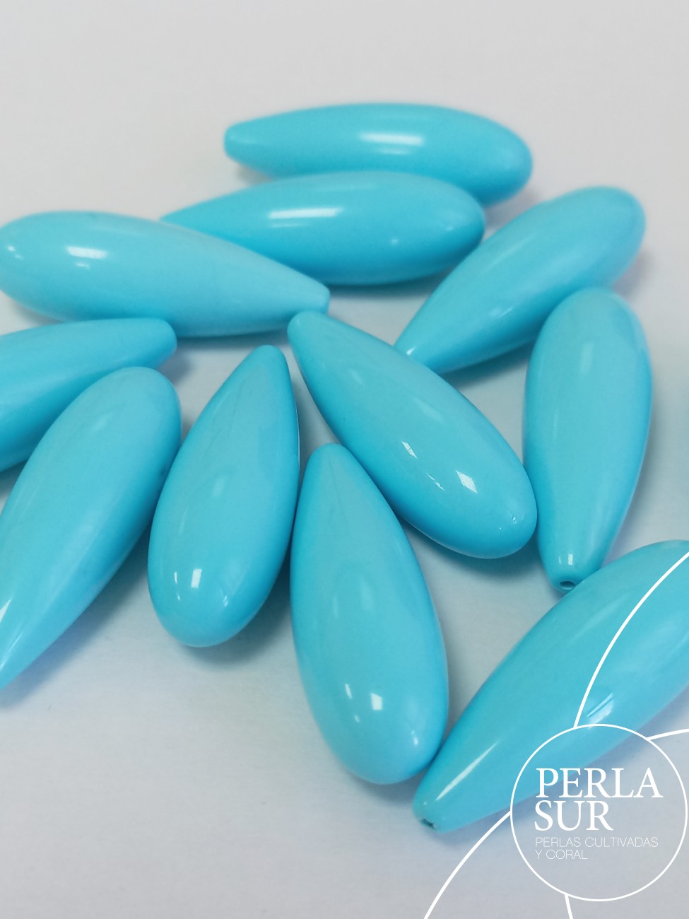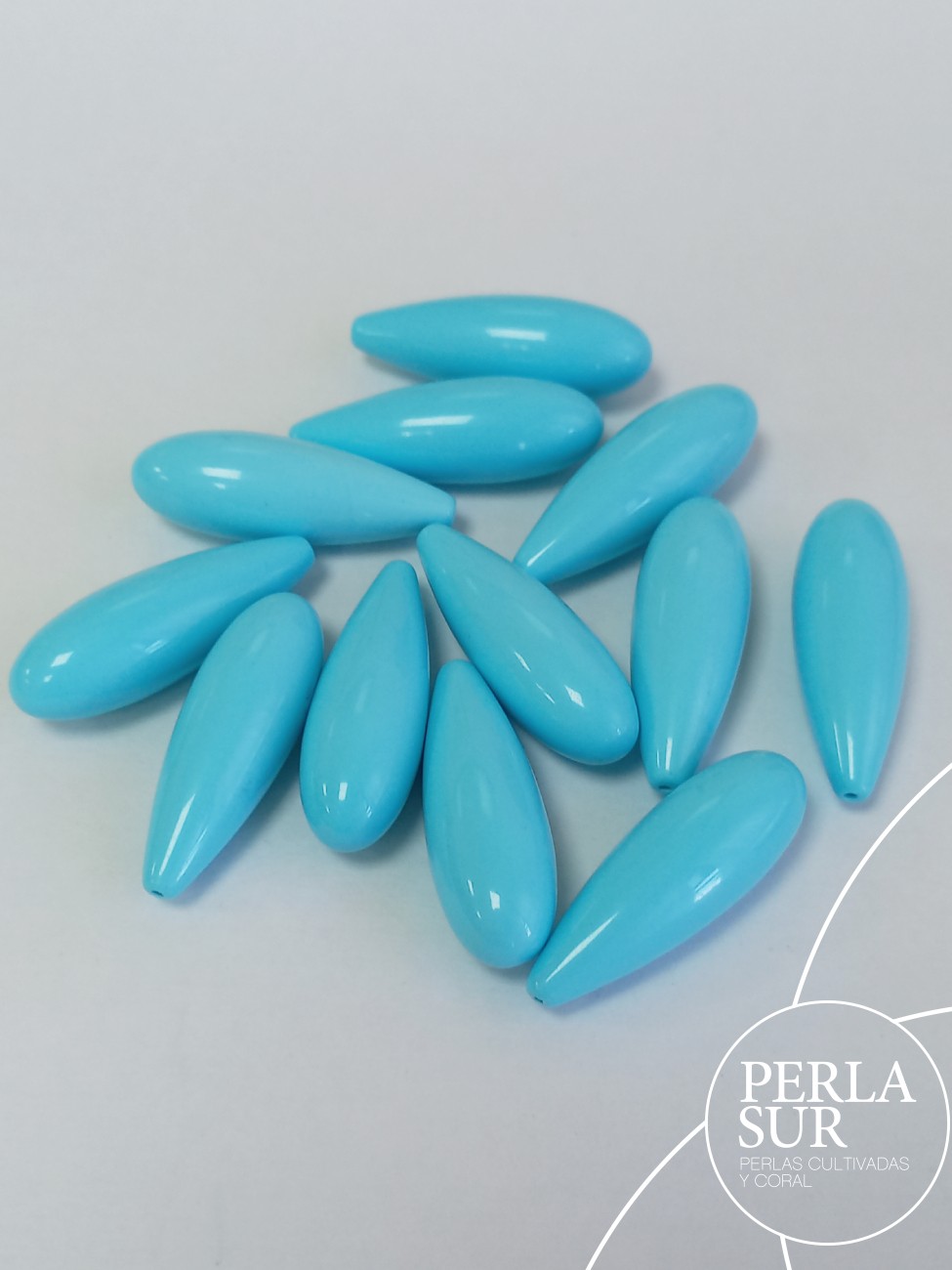 Perilla 35x12mm 1/2t turquesa reconstituida, medio taladro.