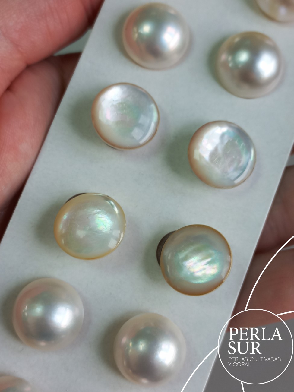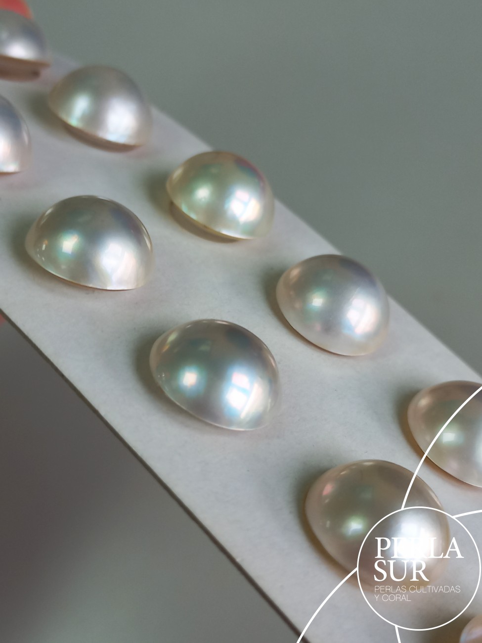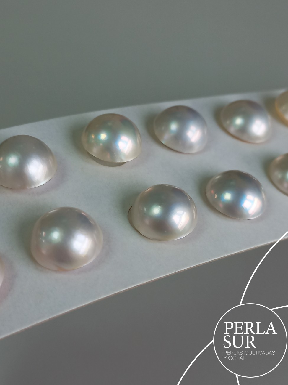 Perla mabe o japonesa. Superficie lisa. Tono gris.