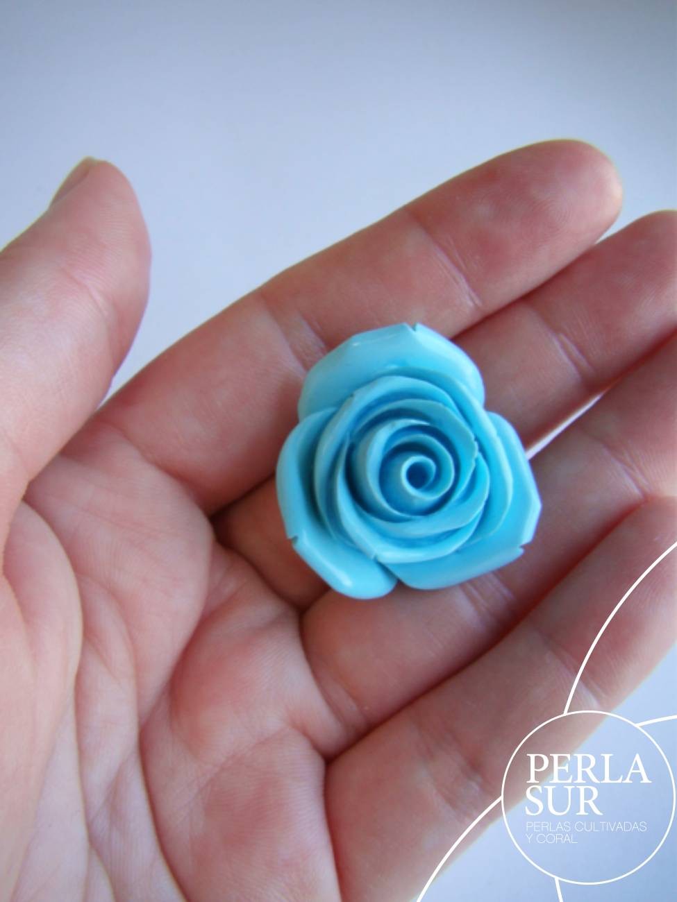 Rosa de turquesa reconstituída de alta calidad de 30mm de ancho. Pieza sin taladro debido a su gran tamaño. No se degrada el color. Tallada a mano. Precio por unidad.