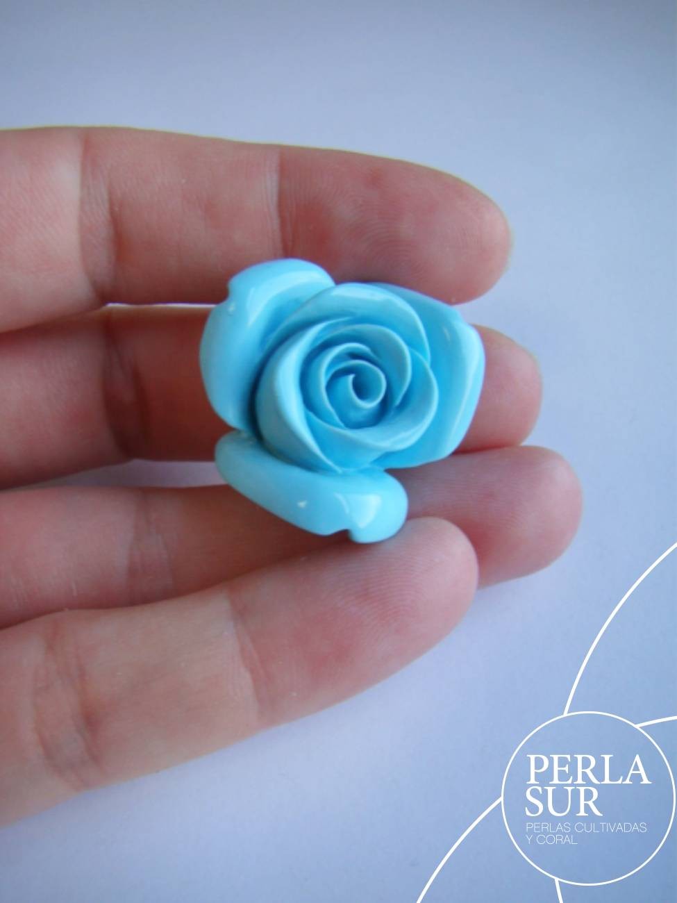 Rosa de turquesa reconstituída de alta calidad de 26mm de ancho. Pieza con medio taladro. Tallada a mano.